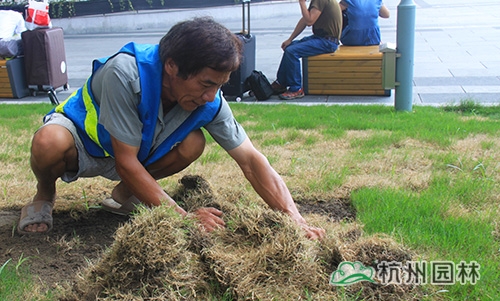 烈日下,他们在进行苗木养护工作,美景,离不开他们的辛苦付出