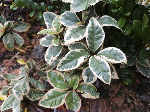 为日本引进品种,常绿地被灌木,植株低矮,带有奶白色花边,适合用于寄植和阴生花园营造,在半阴通风湿润不积水的户外环境栽培比较合适,阳台盆栽皆可。
