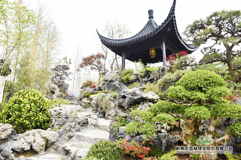 “浙江园采用浙派园林的造园手法,追求自然,因此,在材料的选择上,尽量做到原汁原味。园内的汀步、几座小桥桥面用的都是老石板,有一座桥面,我们甚至直接挑选了一块太湖石。这些材料没有太多人工雕琢的痕迹,显得古色古香,走进来,就给人一种亲切感,好像到了自己家的院子。这正是我们想要的家的味道,也是浙派园林所追求的一种自然意境。”吴小成的一席话,再一次生动诠释了造园者的用心和细心。