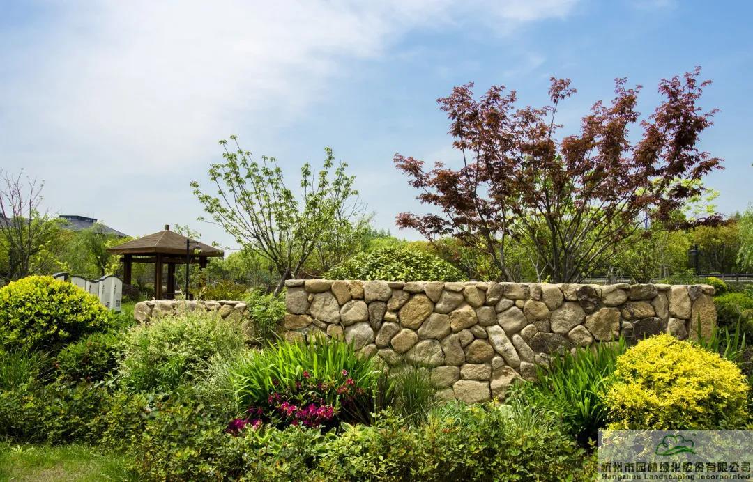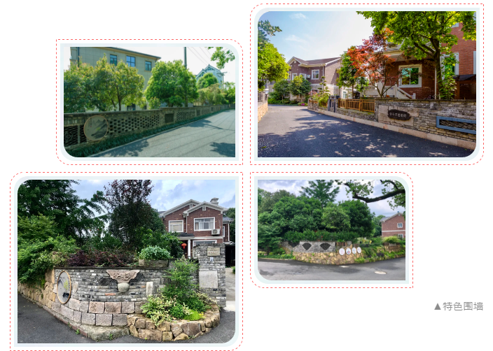 景墙边的植物配置同样有讲究。利用银杏、桂花、梅花、红枫等植物营造上层空间,这些植物具有遮挡作用,能够为庭院营造一定的私密空间。通过各种形态的小型乔灌木,打造中层空间,砖石和衬托景墙,使家家户户的景观更加丰富多变。